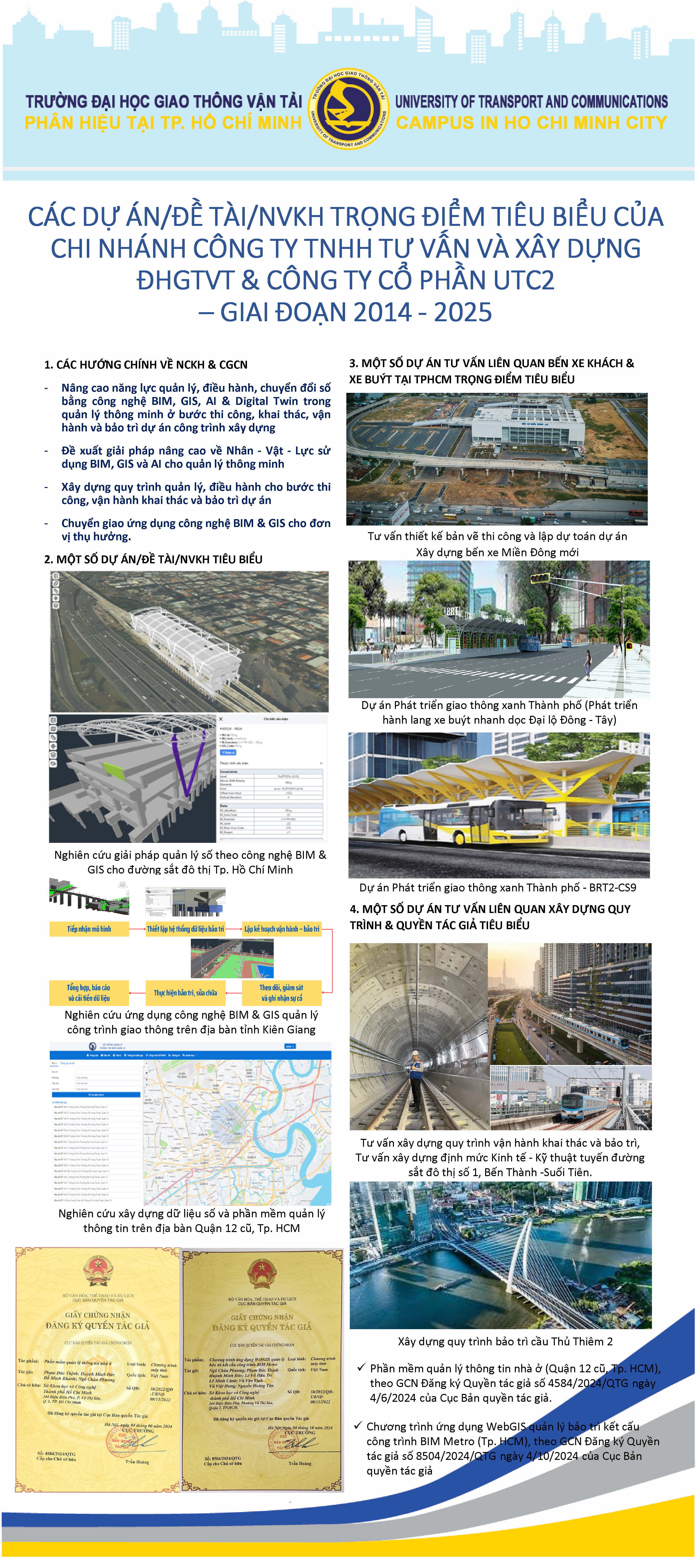 Các dự án đề tài NVKH trọng điểm tiêu biểu của chi Nhánh Công ty TNHH Tư vấn và Xây dựng ĐHGTVT và Công ty Cổ phần UTC2 từ 2014 đến 2025