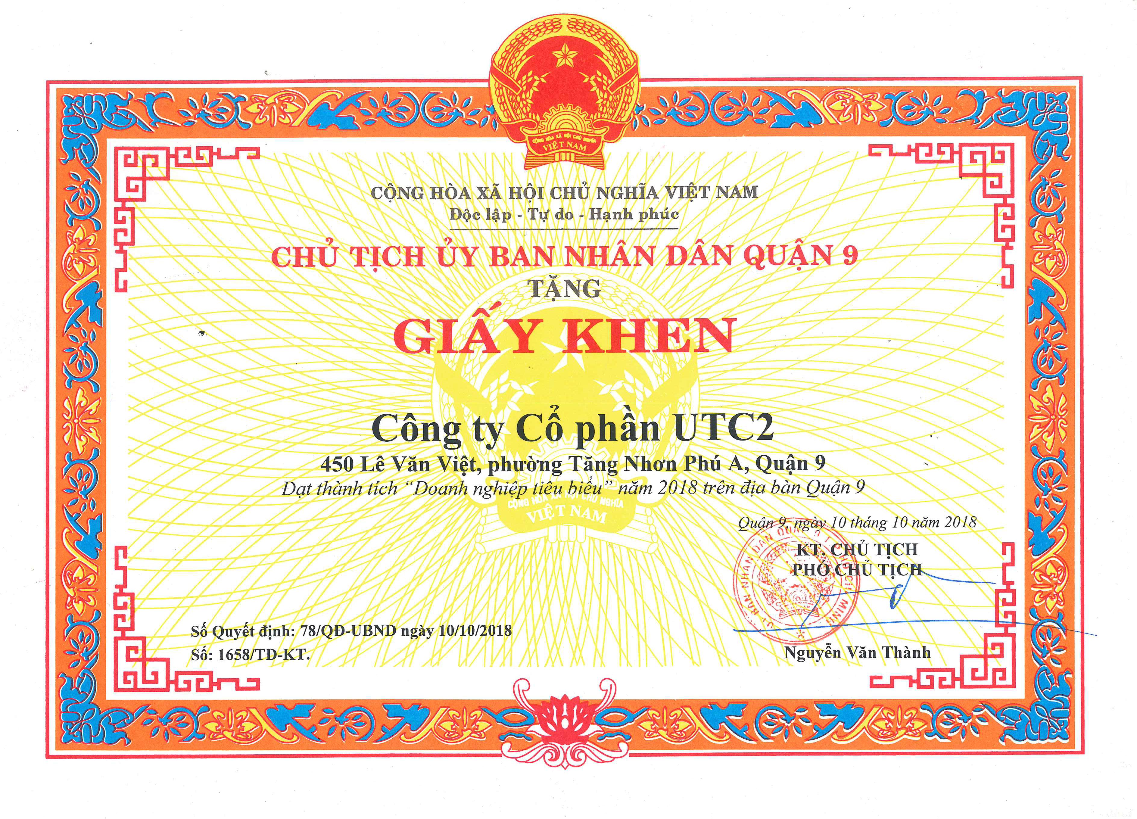 2018. Giấy khen của UBND Quận 9 2020. Bằng khen của UBND tỉnh Bình Dương